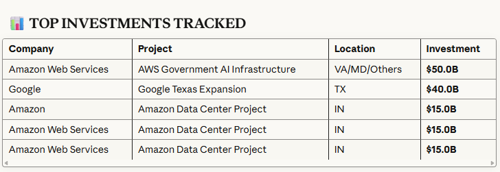 Note: The three $15B Indiana projects may represent phases of the same development. Source verification ongoing.